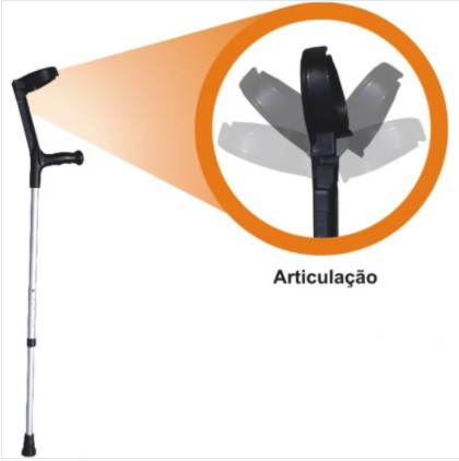 O punho articulável permite que o usuário levante o braço e a muleta fique presa em seu punho. Isso evita a perda da bengala e possíveis quedas da mesma.