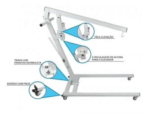 Confeccionados para resistir ao desgaste, sujeira e umidade. - Amplitude de altura permite levantar do chão e superfícies altas (até 110cm.) - Design neutro atraente, combina bem em qualquer ambiente, e grande facilidade para transporte em veículos.