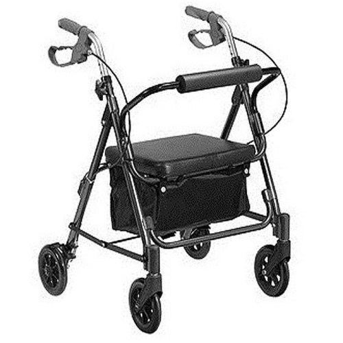 Andador de alumínio para idosos possibilitam um deslocamento seguro e confortável, pois além de freios para segurança, possui também assento e apoio para costas, que possibilitam sentar e descansar durante seu percurso. Quando utilizado para sentar é possível travar as rodas traseiras. As rodas dianteiras, giratórias, têm limitador de giro para reduzir a amplitude de movimentos, proporcionando maior estabilidade quando desejável. Possui cinco níveis de ajuste de altura.