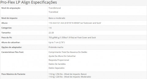 O Pro-Flex LP Align combina funcionalidade, conforto e design estético. Ele permite aos usuários a liberdade de escolher o calçado que melhor se adapte às suas atividades, sem comprometer o alinhamento, a postura, a dinâmica ou a funcionalidade. O recurso de ajuste de altura do calcanhar é rápido e fácil de usar.