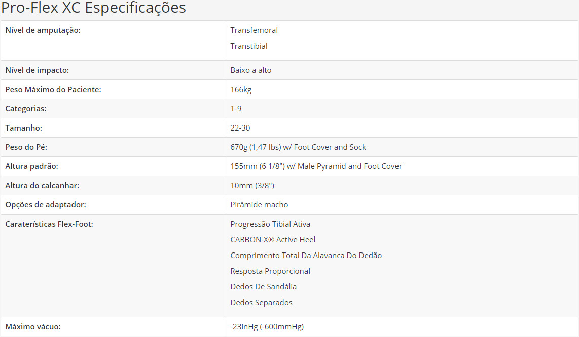 O Pro-Flex XC foi criado para o usuário relativamente ativo, que gosta de escaladas e corridas, assim como o usuário que faz caminhadas comuns. Contém uma cobertura anatômica para o pé esteticamente agradável, e é integrado com uma pirâmide macho.